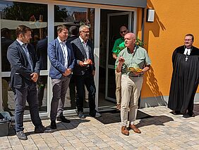 Das ist viel Grund zur Freude für Bürgermeister Thilo Wehner und Pfarrerin Christl Kupfer gleichermaßen, ist doch stolzer Träger der Einrichtung die Evangelische Kirchengemeinde Sondheim v.d.Rhön. Bei der Eröffnung waren Sandro Kirchner (MdL), Landrat Thomas Habermann sowie Bad Neustadts Dekan Karl-Uwe Rasp anwesend.. „Es war ein sehr erfolgreiches Projekt“, stellt Bürgermeister Thilo Wehner fest. Gottes Segen erbat der Dekan in einer kleinen Andacht für die Kinder, die Krippe und Kindergarten besuchen, sowie für alle Mitarbeiter und Menschen die hier ein und ausgehen.